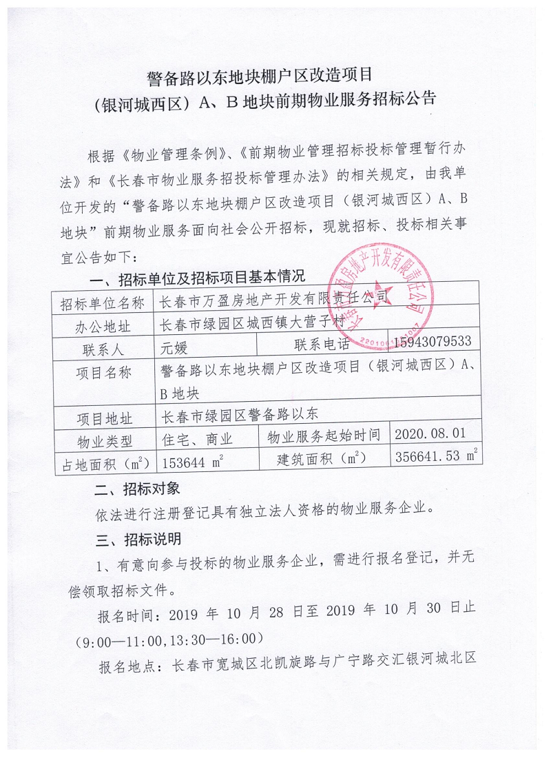 警备路以东地块棚户区改造项目(银河城西区)A、B地块前期物业服务招标公告