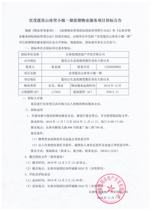 世茂莲花山冰雪小镇一期前期物业服务项目招标公告