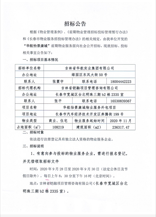 华航怡景康城项目前期物业服务招标公告