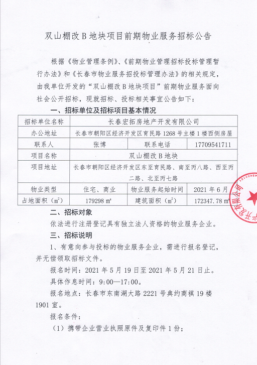 双山棚改B地块项目前期物业服务招标公告