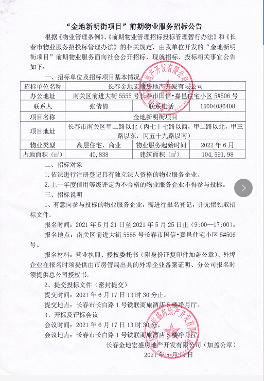 金地新明街项目前期物业服务招标公告
