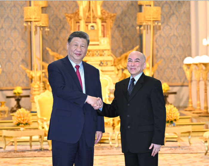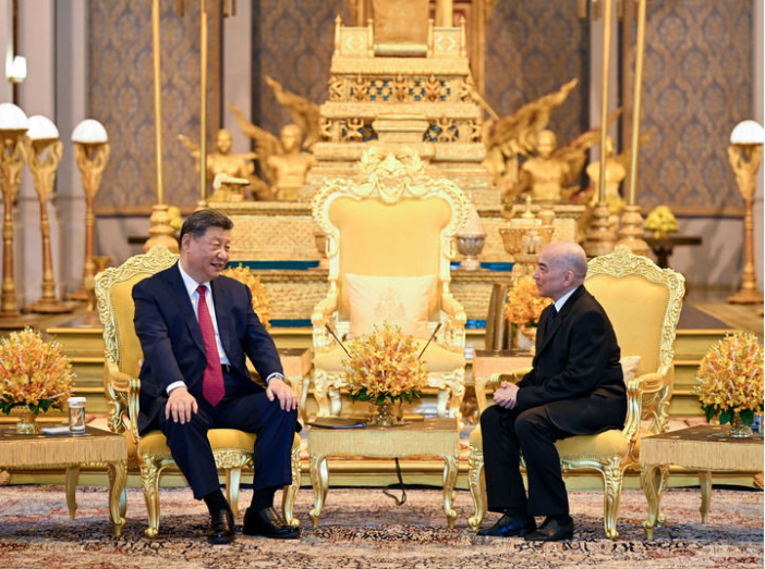 习近平强调,中方珍视同柬埔寨王室的友谊,高度评价多年来柬王室为中柬友好事业作出的重要贡献。新形势下,中柬双方要珍惜并传承中国老一辈领导人和西哈努克太皇共同缔造的中柬铁杆友谊,赋予中柬命运共同体新的时代内涵,服务各自国家发展和人民福祉,为构建周边命运共同体、推动构建人类命运共同体作出更大贡献。中方坚定支持柬埔寨保持稳定、加快发展、改善民生,走符合本国国情的发展道路,相信中国式现代化将为柬埔寨等周边国家带来更多机遇,相信构建新时代全天候中柬命运共同体一定会谱写壮丽篇章。