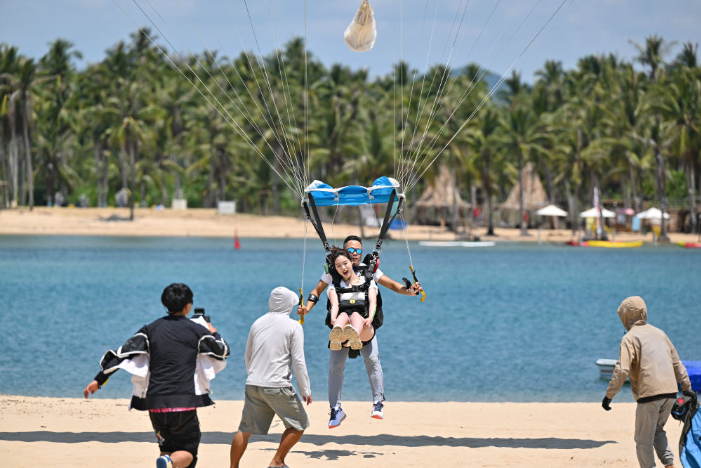 刚刚过去的“五一”假期,三亚塔赫跳伞基地日均接待量较平日增长约70%,2024年基地接待跳伞客人超过1万人次,今年一季度已经达到6000人次。三亚塔赫极限运动俱乐部有限公司总经理张恩铭说:“低空旅游以高空视角赋予传统景区全新魅力,尤其受年轻群体追捧。”