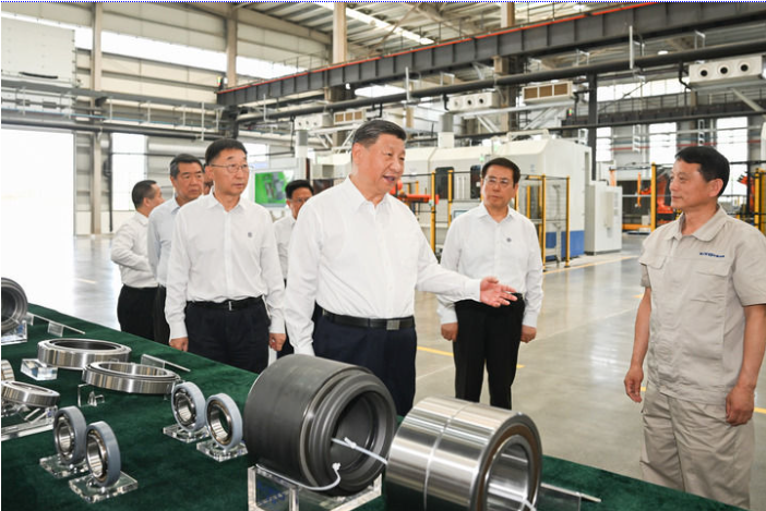 19日下午,习近平首先来到洛阳轴承集团股份有限公司考察。该公司前身为“一五”期间建成的洛阳轴承厂。在智能工厂,习近平了解企业发展历程,听取不同类型轴承产品用途和性能介绍,走近生产线察看生产流程。他对围拢过来的企业职工说,制造业是国民经济的重要支柱,推进中国式现代化必须保持制造业合理比重。现代制造业离不开科技赋能,要大力加强技术攻关,走自主创新的发展路子。他勉励职工发扬主人翁精神,在企业发展中奋发有为、多作贡献。