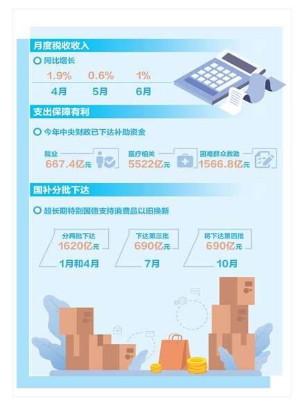 收入回升,支出有力,为落实更加积极的财政政策提供坚实资金保障。“围绕提振消费、稳就业稳经济等重点领域,财政部门加强财政政策供给和资金拨付管理,确保尽早发挥政策效果。”财政部预算司一级巡视员、政府债务研究和评估中心主任李大伟说。