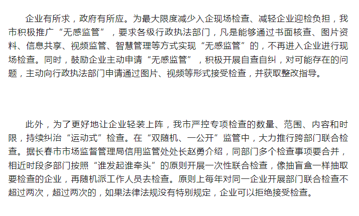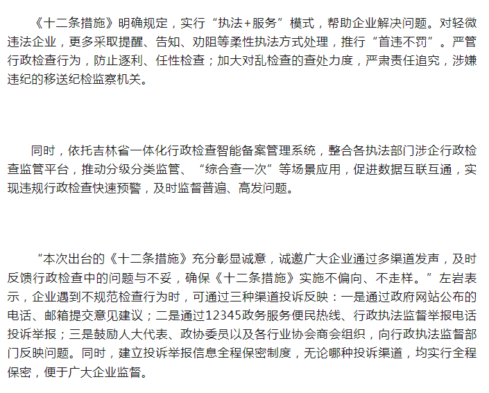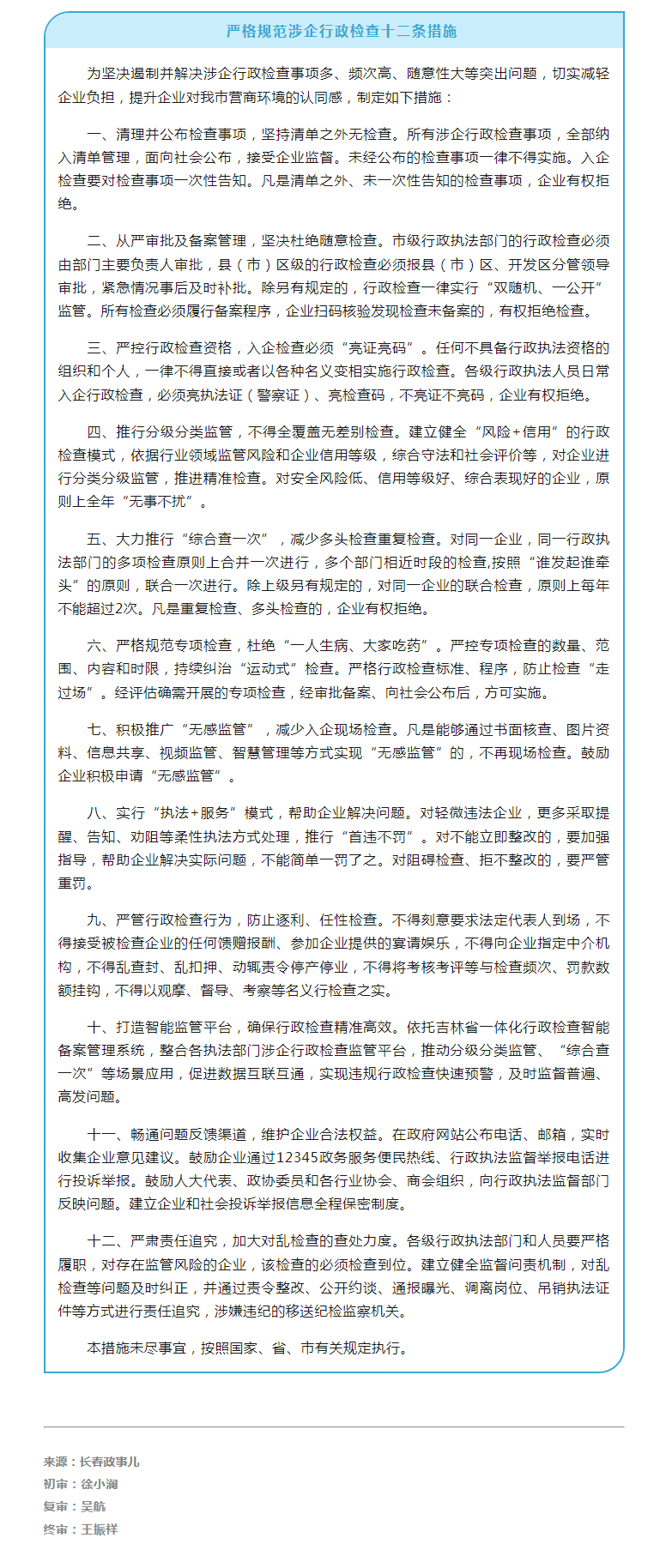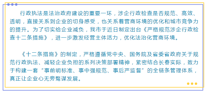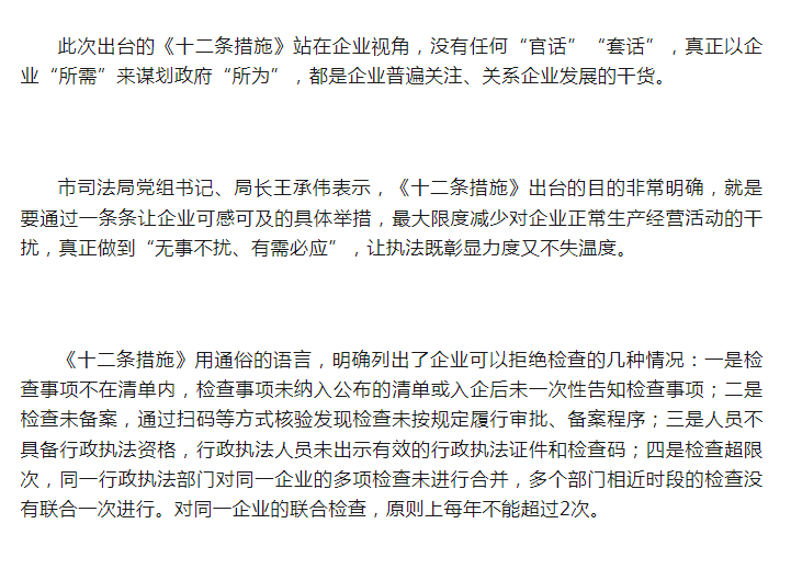 为企业减负 优化法治化营商环境 我市出台《严格规范涉企行政检查十二条措施》