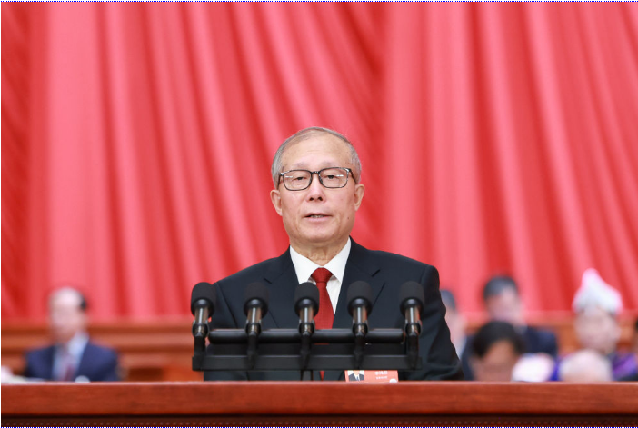 3月5日上午,第十四届全国人民代表大会第四次会议在北京人民大会堂开幕。受全国人大常委会委托,全国人大常委会副委员长李鸿忠分别作关于生态环境法典草案的说明、关于民族团结进步促进法草案的说明、关于国家发展规划法草案的说明。新华社记者 丁海涛 摄